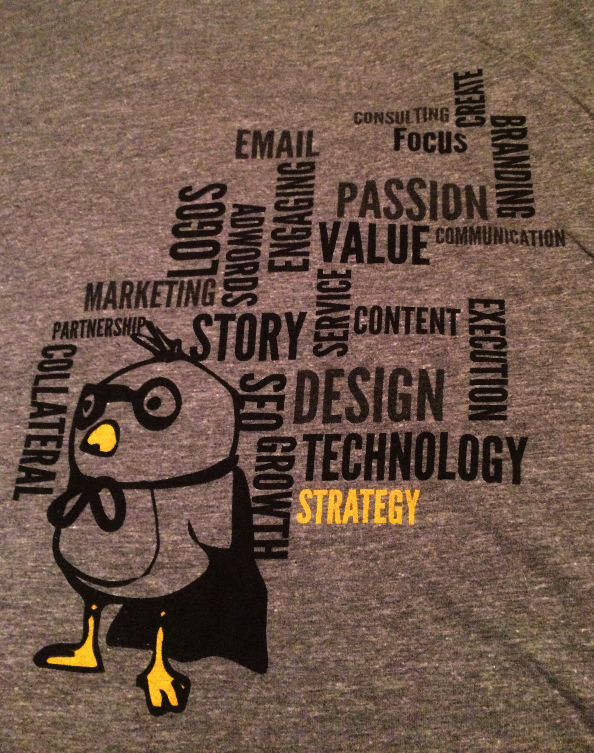 Pixel is a bird combination of a penguin with long legs wearing a cape. He is a new character to Strategy, LLC. and will be known in the design world.
